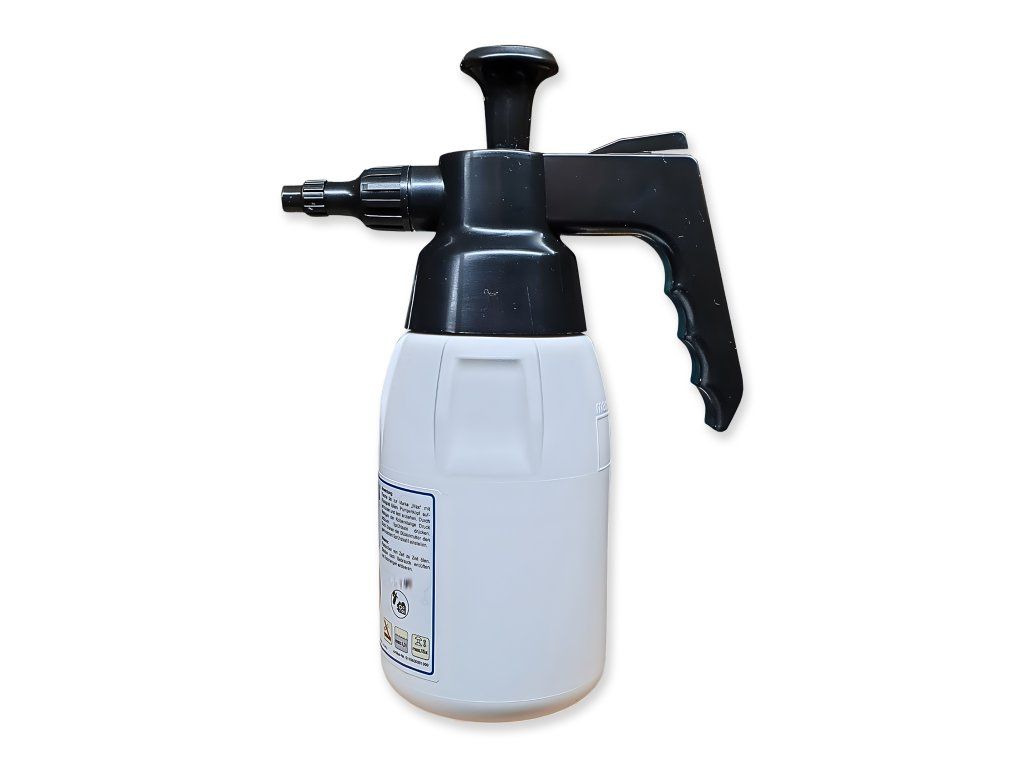 Vysokokvalitná plastová nádoba. Praktická rukoväť v tvare hríba na zvyšovanie tlaku. Nastaviteľná mosadzná rozprašovacia tryska – od rozprašovanej hmly po prúd.